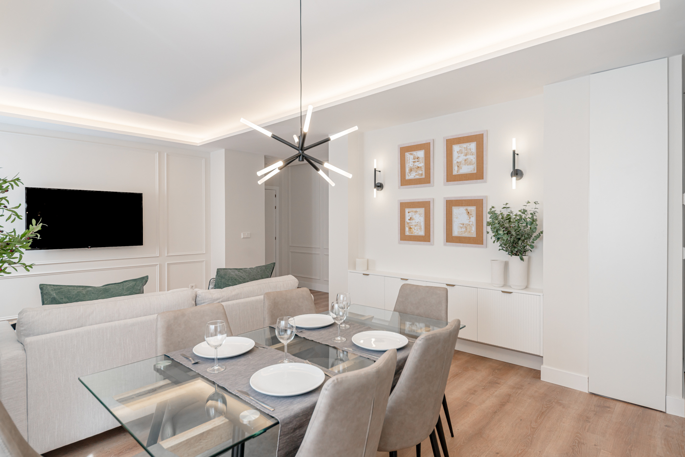 Sumérgete en la elegancia clásica de nuestro último proyecto de reforma integral en un piso de Atocha. Con molduras y juegos de techos cuidadosamente seleccionados, hemos creado un espacio que refleja la sofisticación atemporal. Descubre la fusión de tradición y modernidad en cada rincón.