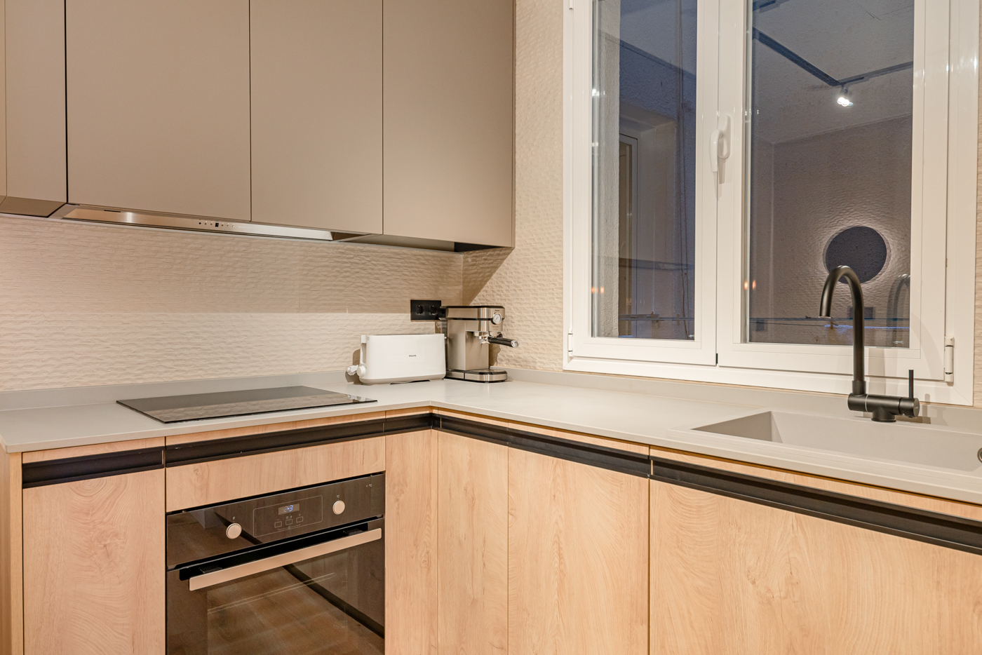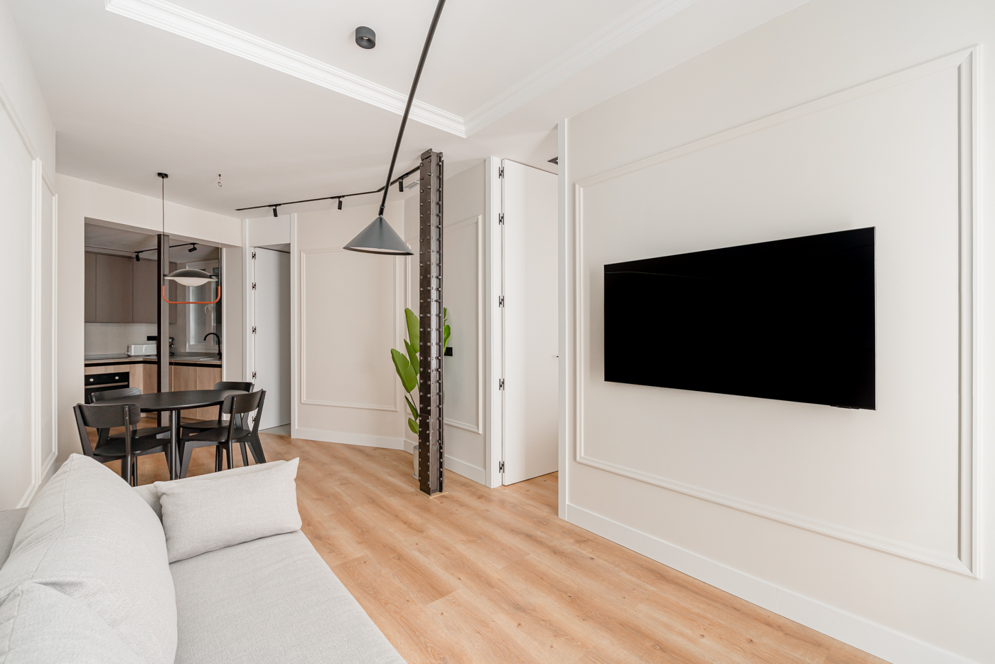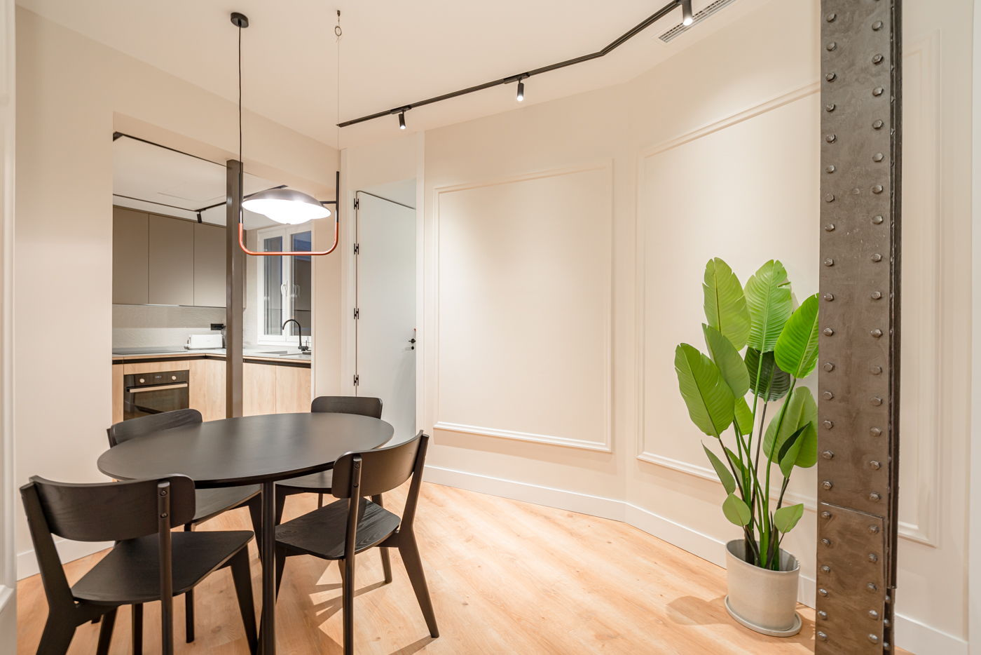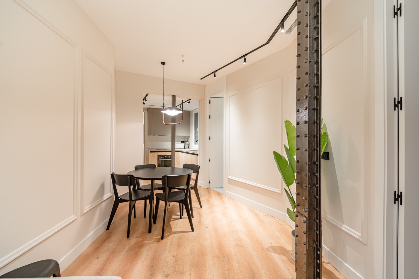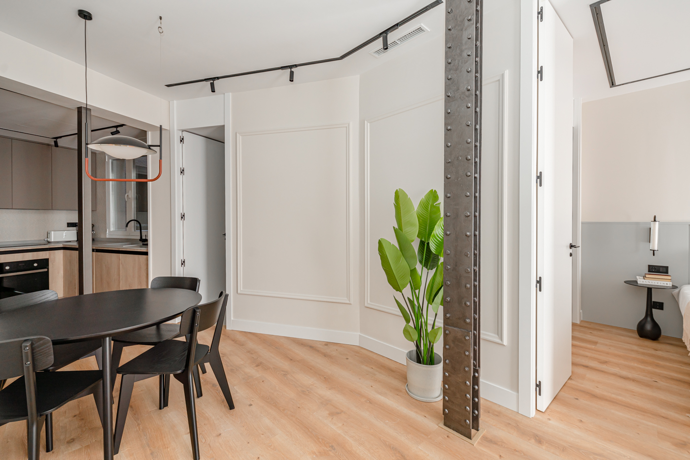 Explora la armoniosa fusión de modernidad y estructura original en nuestro último proyecto de reforma en Hermosilla. Redefinimos el espacio al reubicar la cocina, dejando expuestas las elegantes columnas de acero. La iluminación, con carriles y moldurados, destaca cada detalle. ¡Sumérgete en la nueva era de la elegancia contemporánea!